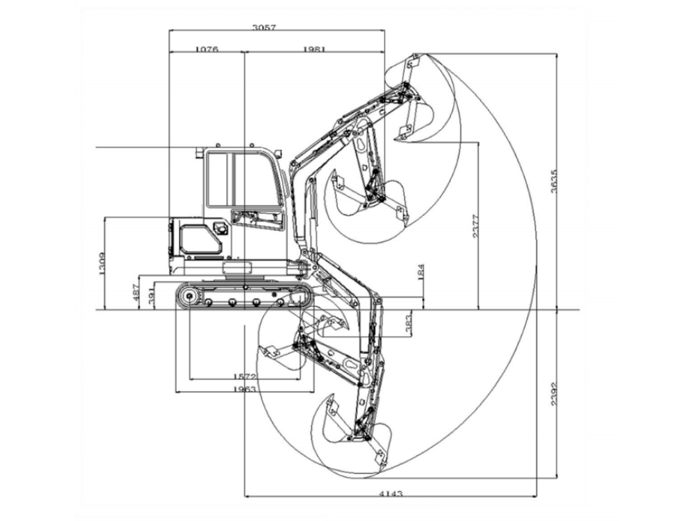 - maximálny polomer kopania: 4143 mm